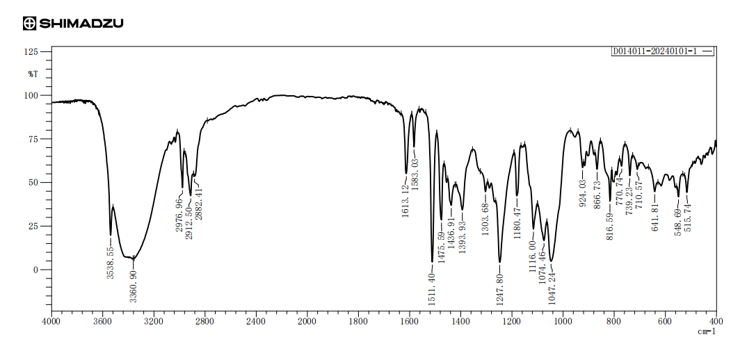 ①3360.90~3538.55cm-1,结构中活泼羟基(-OH)的伸缩振动吸收峰;